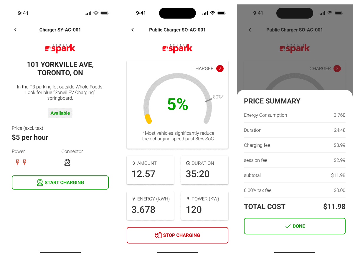 Soneil needed to design a user-friendly charging station interface for their new DC fast charger line. The challenge was creating an experience that would work for both occasional EV drivers and commercial fleet operators, while meeting stringent safety and accessibility requirements in the rapidly evolving EV charging market.